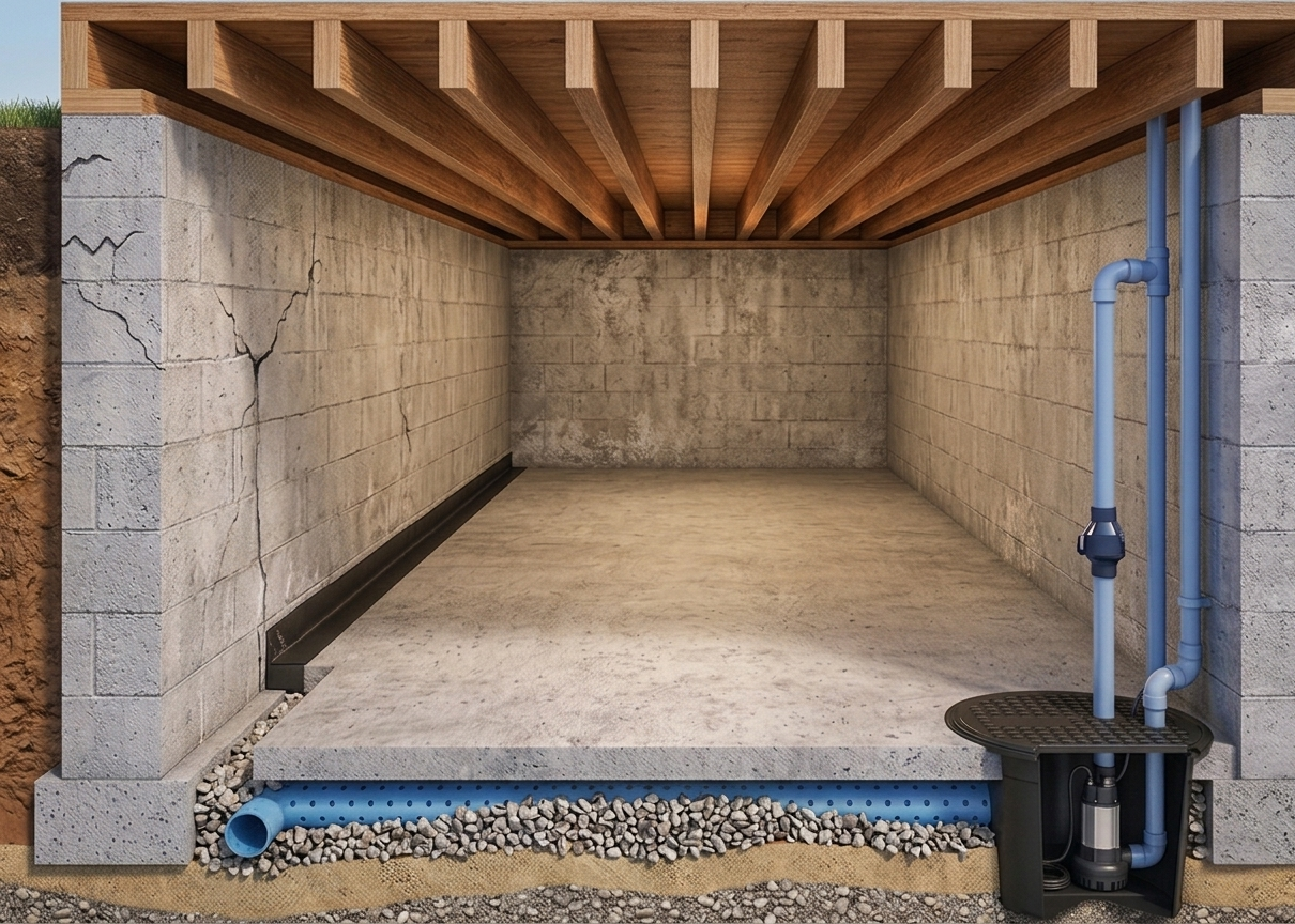 We provide both interior and exterior waterproofing systems. Interior solutions include French drains, sump pumps, and drainage channels to manage water that enters. Exterior solutions involve excavation, foundation sealing, and perimeter drainage systems that stop water before it reaches your foundation.
